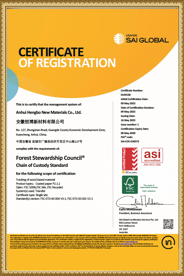 Selskapet har fem høyhastighets enkelt (dobbel) overflatebeleggingsmaskiner, seks silisiumbeleggingsmaskiner, fem trykkemaskiner, fem rewinding scutters og annet utstyr. Den årlige produksjonen er mer enn 32 000 tonn, med fokus på produksjon av bestrøket papir, slipppapir, slippfilm, enkelt- og dobbeltsidebelagt papir, enkelt og dobbelt silisiumslipppapir, PET-komposittpapir, luftkanalpapir, Glasin og andre produkter .