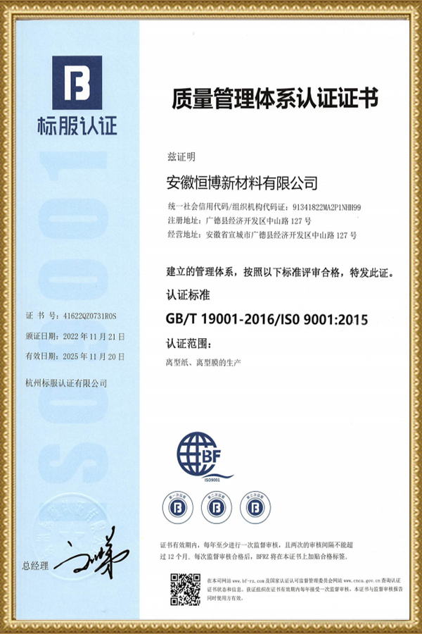 Anhui Hengbo New Material Co., Ltd. ble etablert i 2017, hovedsakelig engasjert i: PET polyesterfilm, PET-slippfilm, beskyttelsesfilm.